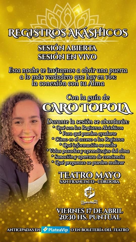 abril 16 @ 22:00 - abril 17 @ 00:00Sesión abierta de Registros Akáshicos en el Teatro Mayo