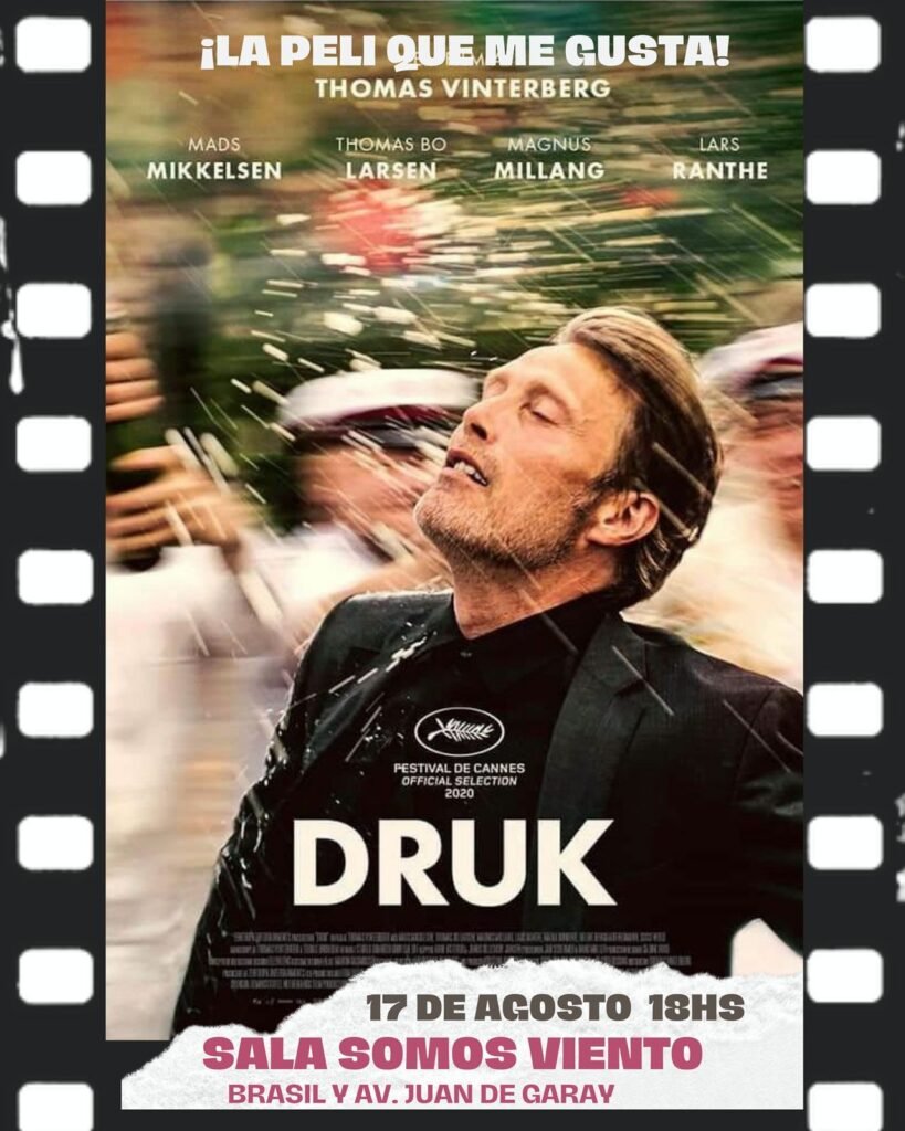 En esta ocasión, se proyectará Otra Ronda, producción danesa de 2020 dirigida por Thomas Vinterberg y enmarcada en el género de comedia negra. La historia sigue a cuatro profesores de secundaria que deciden embarcarse en un peculiar experimento sociológico: mantener un nivel constante de alcohol en sangre con la idea de levantar el ánimo de un amigo deprimido y comprobar si, efectivamente, “con un trago todo puede ser un poco mejor”.