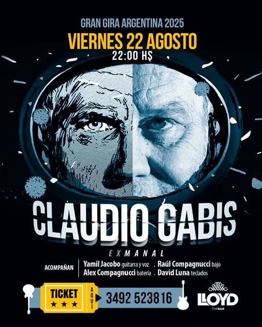 El próximo viernes 22 de agosto, Lloyd The Bar recibirá a Claudio Gabis, uno de los nombres más emblemáticos del rock nacional, en una noche que promete historia, música y emoción.