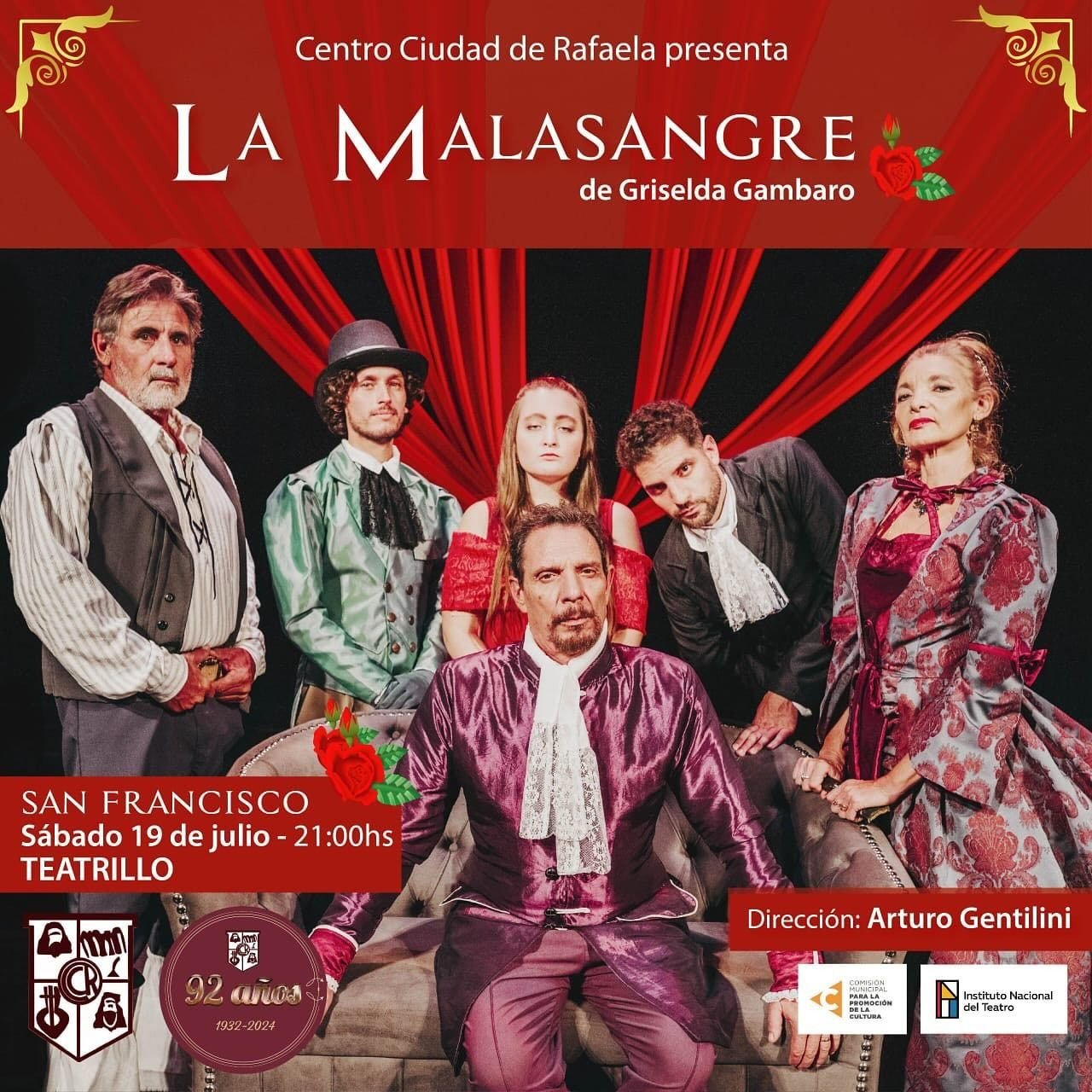 Con motivo de sus 92 años de producción teatral ininterrumpida, el reconocido Grupo de Teatro del Centro Ciudad de Rafaela llega a San Francisco con su reciente estreno: La Malasangre, de Griselda Gambaro. La función tendrá lugar en el Nuevo Teatrillo, con entradas disponibles en la plataforma Platea Vip o en boletería.