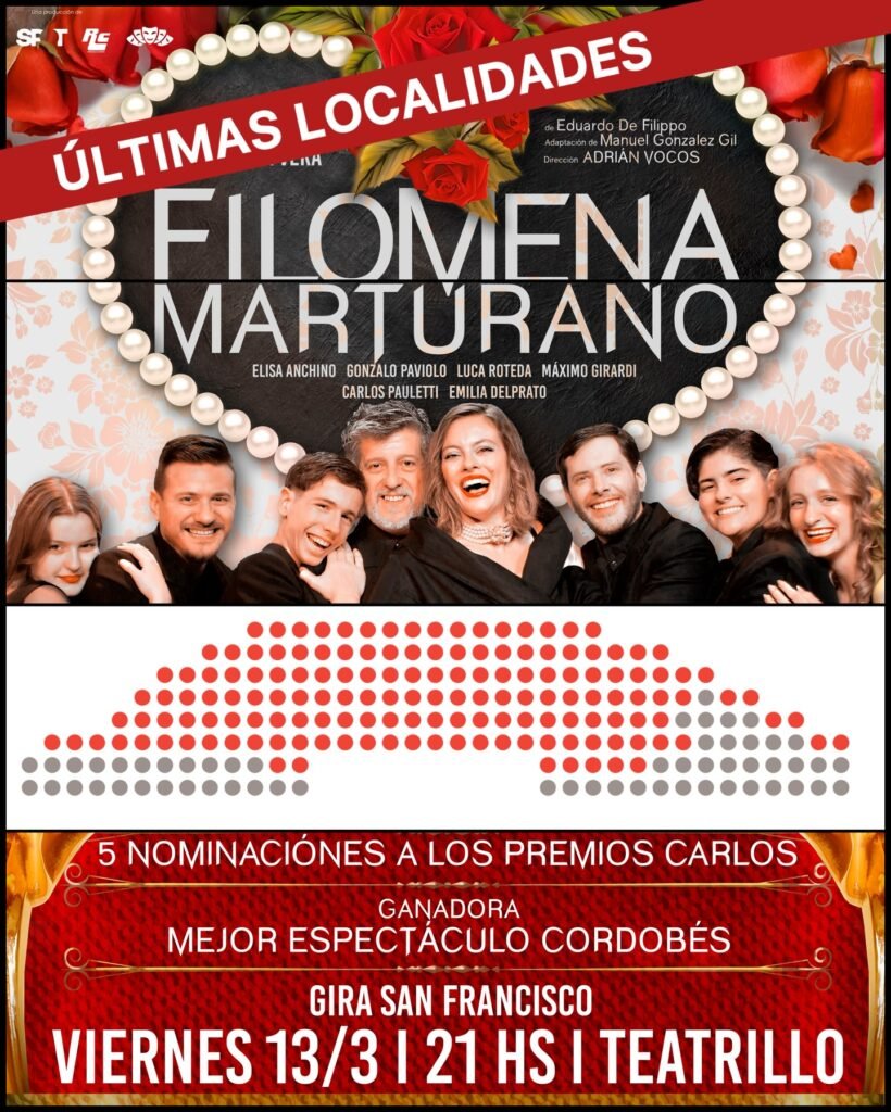 La obra, reconocida con el Premio a Mejor Espectáculo Cordobés y con múltiples nominaciones a los Premios Carlos, despliega una trama intensa y emotiva donde los vínculos, las decisiones y la identidad ocupan el centro de la escena. “Filomena Marturano” es teatro en estado puro: personajes entrañables, conflictos universales y una interpretación que deja huella.