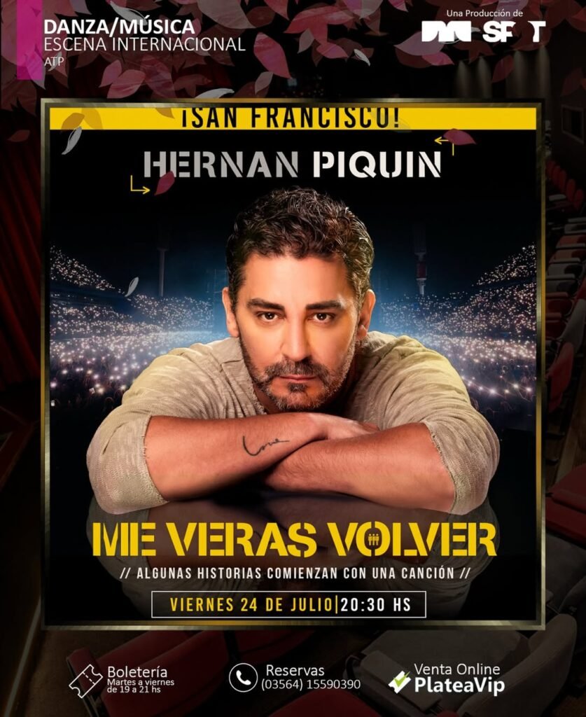 El reconocido bailarín Hernán Piquín se presentará en San Francisco con su espectáculo “Me verás volver (algunas historias comienzan con una canción)”, una propuesta que combina danza contemporánea, teatralidad y música para rendir homenaje a Soda Stereo.