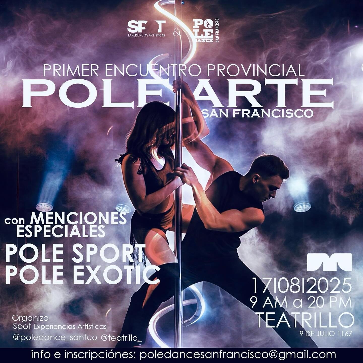 El próximo 17 de agosto, San Francisco vivirá un evento inédito: la primera edición del Encuentro Provincial de Pole Arte, organizado por Spot Experiencias Artísticas y Pole Dance San Francisco. La cita será en el Nuevo Teatrillo (9 de Julio 1167), donde desde las 9:00 hasta las 20:00 h se desplegará todo el talento y la energía de la comunidad pole.
